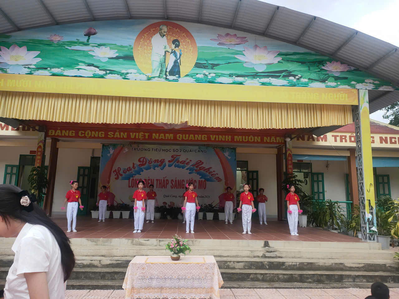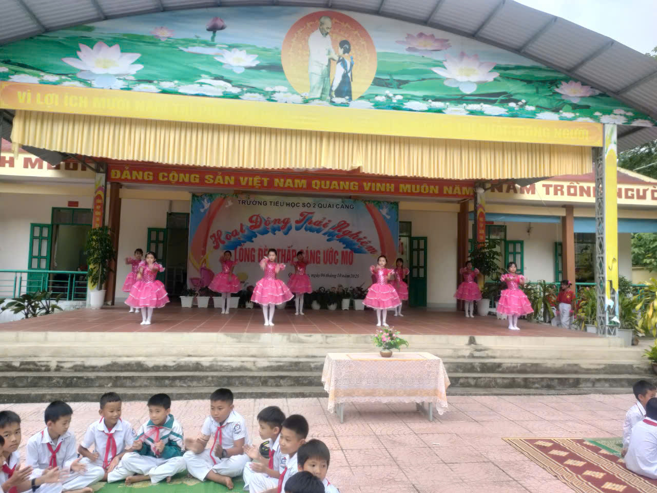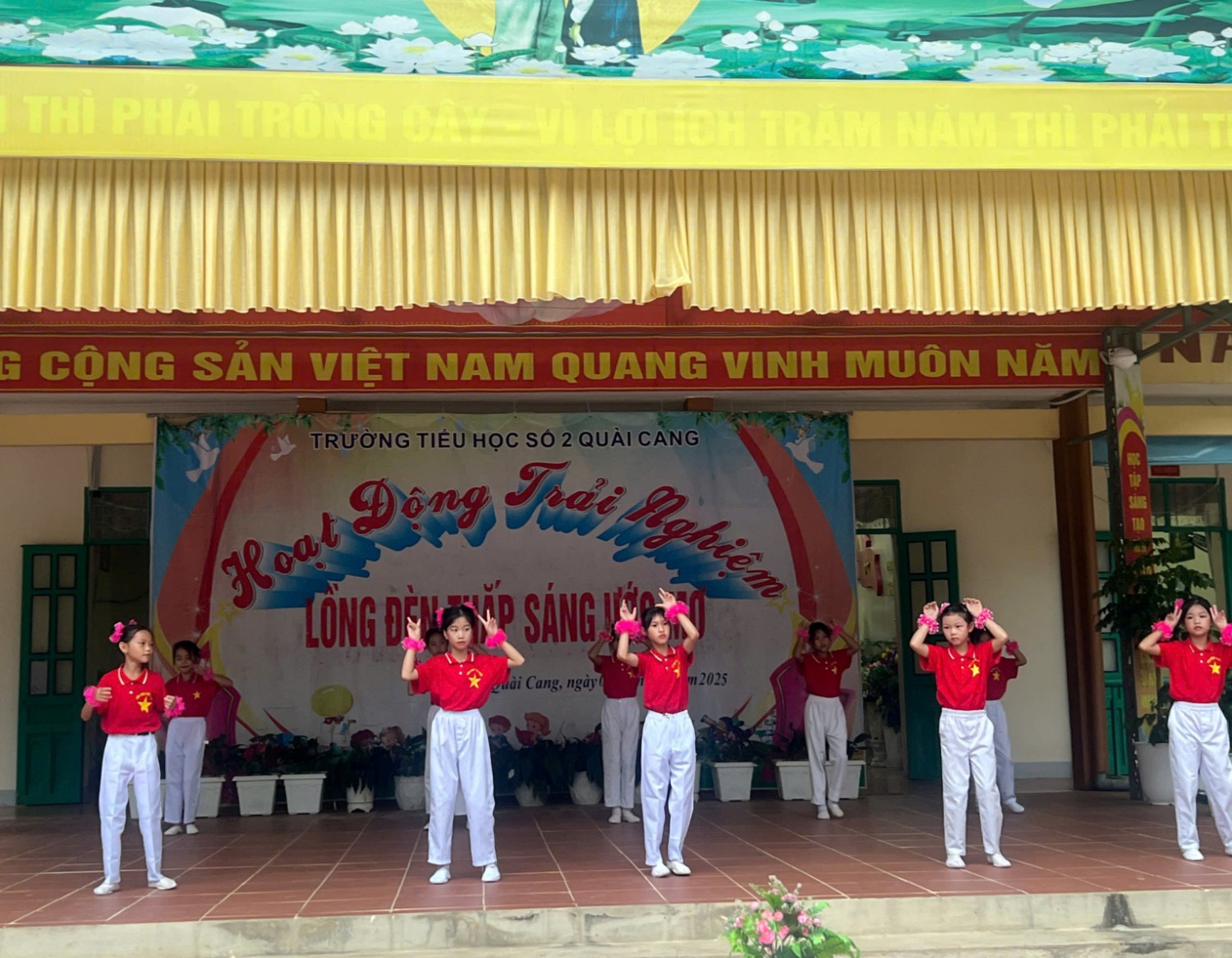 Hòa chung không khí rộn ràng của của Tết trung thu. Sáng ngày 6/10/2025 Trường Tiểu học số 2 Quài Cang đã tổ chức nhiều hoạt động ý nghĩa dành cho các em học sinh. Các em được nghe thư gửi chúc tết Trung thu của chủ tịch nước, nghe sự tích trung thu, tìm hiểu và trả lời câu hỏi về Tết trung thu, phá cỗ… Chương trình không chỉ mang đến cho các em một mùa trung thu ấm áp, nghĩa tình, trọn vẹn niềm vui mà còn thể hiện sự quan tâm đồng hành của Ban giám hiệu, các đoàn thể trong nhà trường và các bậc phụ huynh, giúp các em có một mùa Trung thu vui vẻ. Xin chúc tất cả các em học sinh một mùa trung thu vui tươi, ấm áp và nhiều kỉ niệm đẹp. Dưới đây là một số hình ảnh vui tết T rung thu của thày và trog nhà trường./.