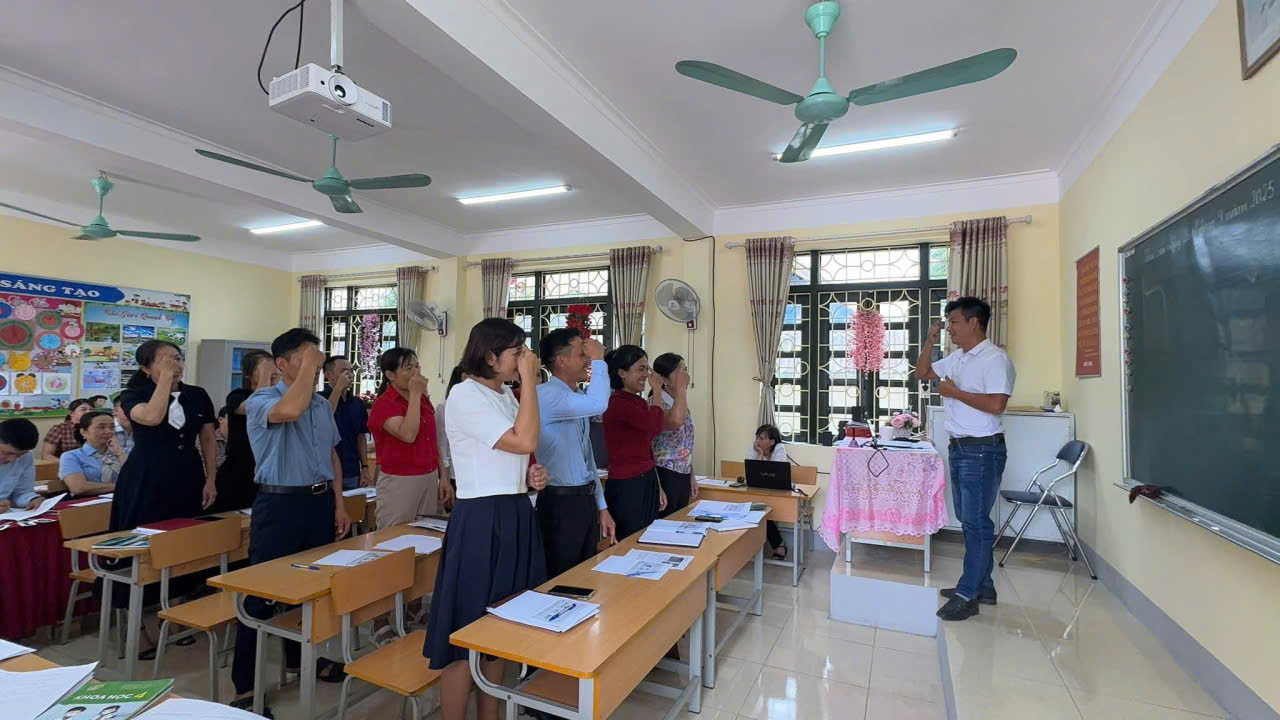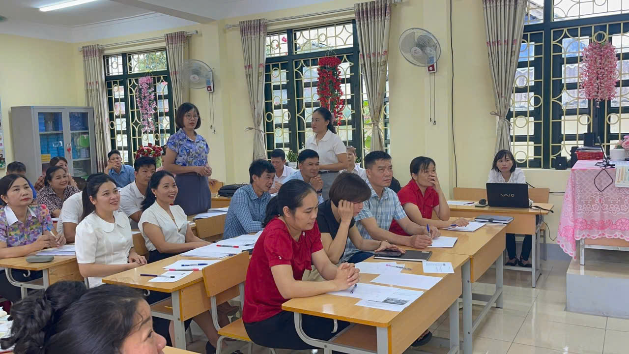 SINH HOẠT CHUYÊN ĐỀ CỤM SỐ 10 “THỰC HÀNH PHƯƠNG PHÁP TĂNG CƯỜNG KỸ NĂNG ĐỌC, VIẾT CHO HỌC SINH TIỂU HỌC” HỌC KÌ I. NĂM HỌC 2025-2026 Sáng ngày 19/9 và 26/9/2025. Cụm chuyên môn số 10 (Cụm trường Tiểu học số 1 Tuần Giáo) đã tổ chức bồi dưỡng “Thực hành phương pháp tăng cường Kỹ năng đọc, viết cho học sinh tiểu học” học kì I năm học 2025-2026 Qua 02 ngày tập huấn Giáo viên nắm được nội dung, cốt lõi về đổi mới phương pháp giảng dạy tăng cường Tiếng Việt. Nhiều ý kiến chia sẻ, thảo luận thiết thực được đưa ra, góp phần nâng cao chất lượng buổi sinh hoạt chuyên đề. Buổi tập huấn được tổ chức khoa học, nội dung hữu ích. Giáo viên tham gia sôi nổi, tích cực, nhiệt tình, trao đổi hai chiều,... Một số hình ảnh diễn ra trong buổi sinh hoạt chuyên môm cụm số 10